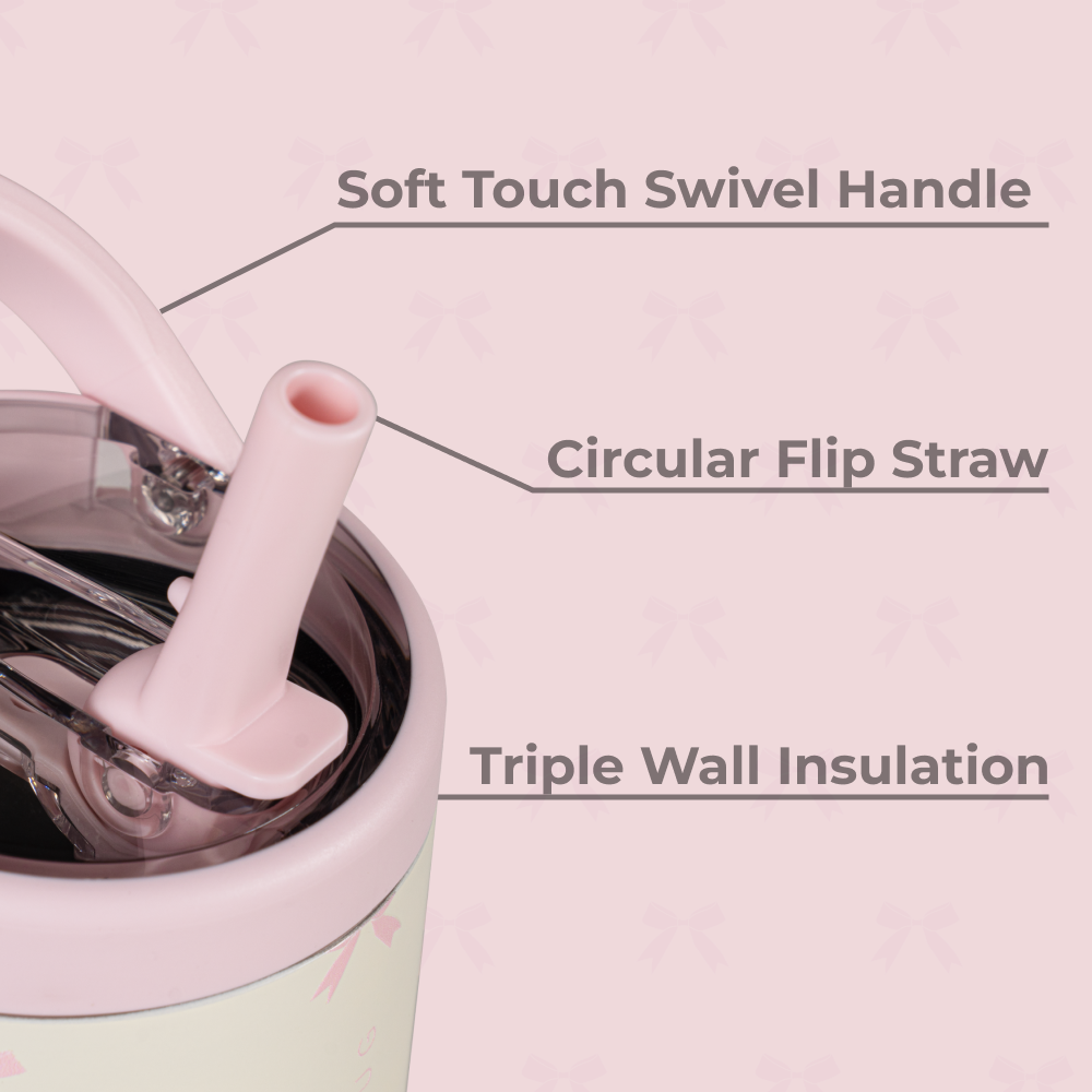 The HydroJug Sport 14oz in Bows is built to keep up with little ones through preschool, playdates, and playground adventures. With its cream base patterned in pale pink bows, this compact water bottle adds a playful design kids will love while delivering the durability parents need. Sized perfectly for kids, the 14oz Sport Bottle is lightweight and easy to carry, even for small hands, thanks to its wide, kid-friendly handle. It���s completely leakproof with the straw down and fits easily in car seats, cup holders, and backpacks ��� no juggling required. Made from 18/8 stainless steel with triple-wall insulation, it keeps drinks cold for hours, while the dishwasher-safe build makes cleanup simple. Tough enough for daily use and fun enough to carry anywhere, Bows insulated bottle is hydration made practical for busy parents and active kids. Dimensions: 3" x 3" x 6.89" Base diameter: 2.76" Capacity: 14 ounces of water ~ 415 mL Weight: 12.5oz ��� WARNING: CHOKING HAZARD ��� Small Parts. This product contains small components that may pose a choking risk. Not suitable for children under 3 years old . Inspect regularly for damage. For questions or concerns, contact customer support.