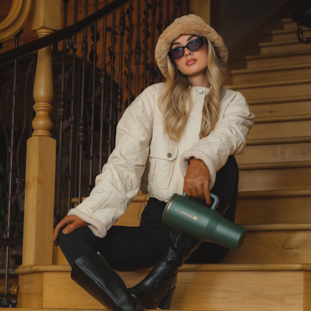The HydroJug Traveler 40oz in Pine delivers all-day hydration in a sleek design. Its deep green finish with a bronze band adds a refined touch, versatile enough for the gym, office, or weekends away. With a 40oz capacity, this tumbler keeps you refreshed longer without constant refills. Triple-wall insulated stainless steel construction ensures your drinks stay ice-cold for hours, while the scratch-resistant finish and dishwasher-safe design make it durable and easy to maintain. Engineered for convenience, it features a leakproof flip-straw lid, a tapered base that fits most standard cupholders, and a sturdy handle that makes carrying simple. Whether you���re commuting, training, or tackling a busy schedule, Pine water bottle is hydration made practical, dependable, and ready to move with you. Dimensions: 3.9" x 6" x 9.84" Base diameter: 3.04" Capacity: 40 ounces of water ~ 1183 mL Weight: 20oz
